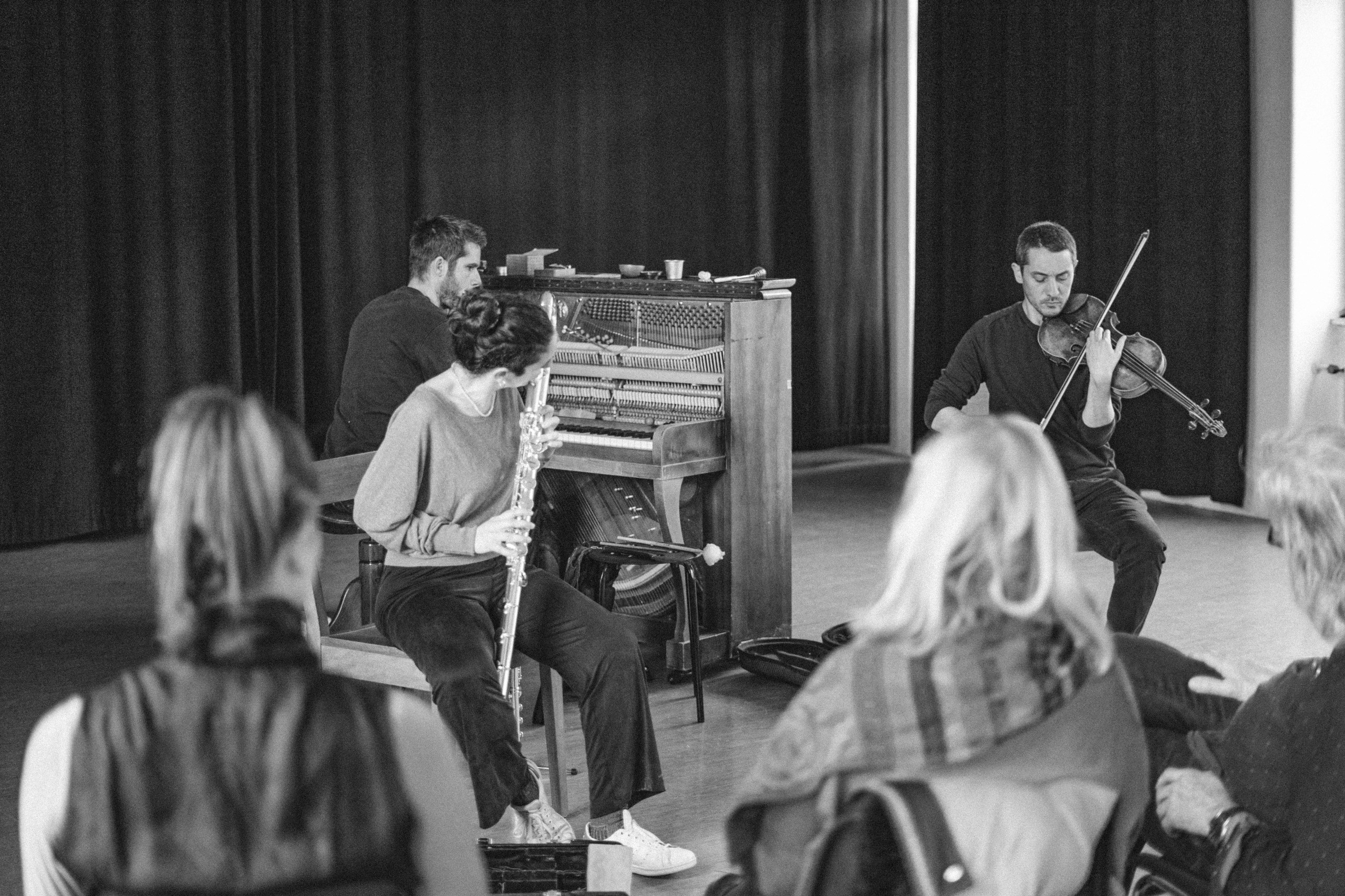 Formed in 2021 in Zürich, the trio of Philipp Eden, Frantz Loriot and Marina Tantanozi explores the possibilities of acoustic improvisation through a distinct instrumentation of piano, viola, and flutes — a music shaped by listening, movement, and resonance.