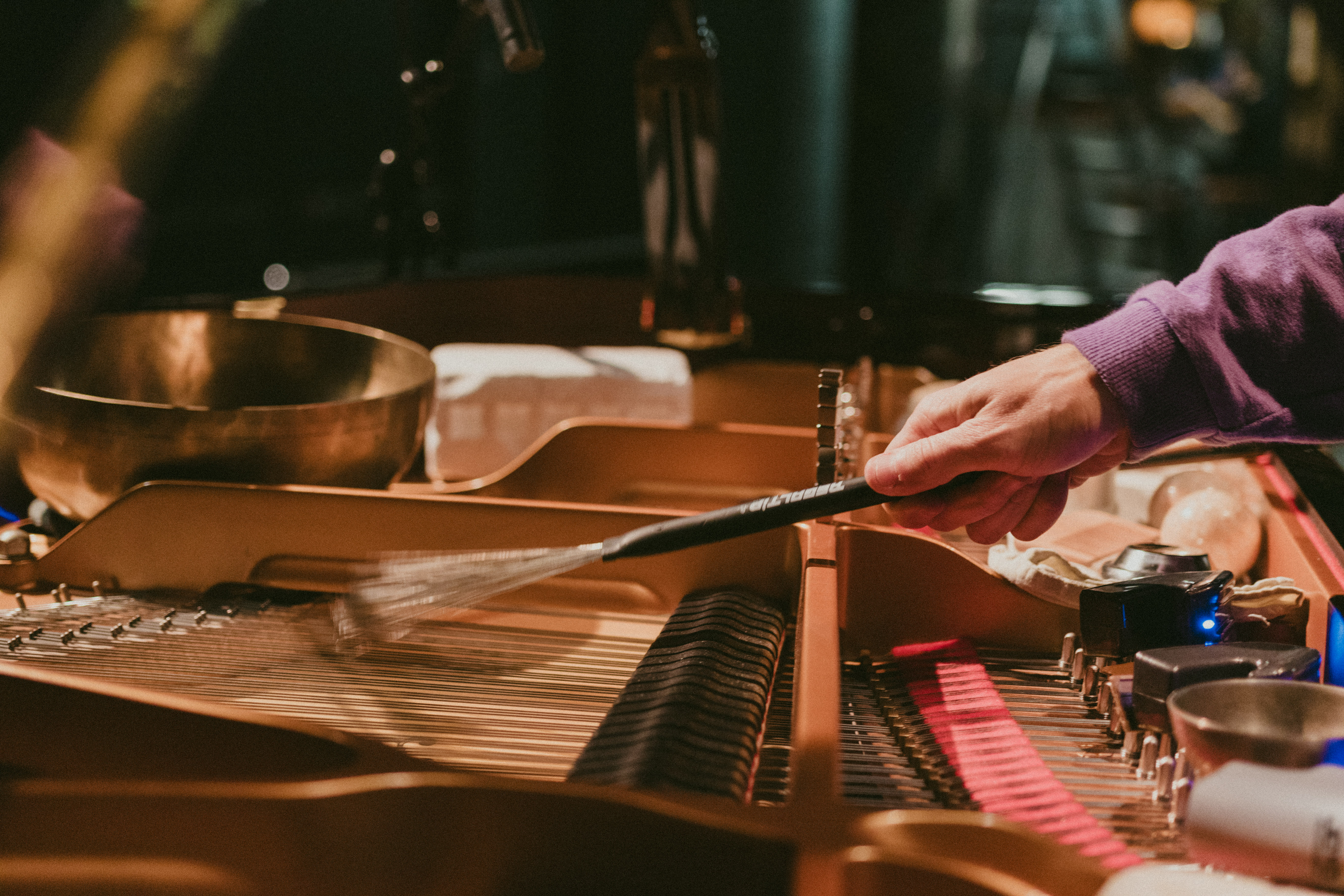 His work reflects his interest in time, presence, perception, and the shifting boundaries between body, environment, and instrument. He sees the piano not just as a fixed instrument, but as something to be continually reimagined — a place for exploration, memory, and play.